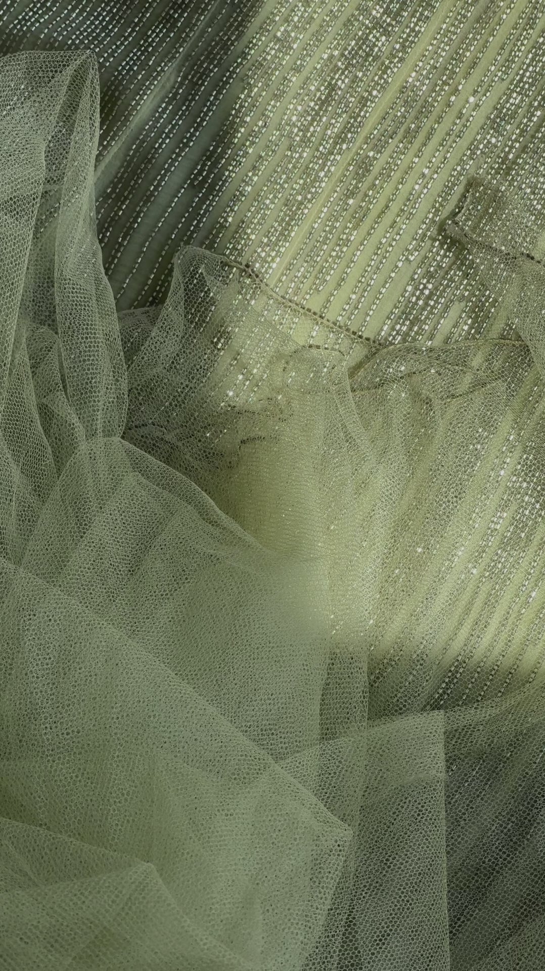 A rare Chanel Haute Couture dress from Karl Lagerfeld’s Autumn/Winter 1995–1996 collection - an extraordinary piece of 1990s couture history. Worn on the runway by Trish Goff, this luminous chartreuse Bianchini silk chiffon dress is entirely hand-embroidered by Maison Lesage in vertical cascades of silver bugle beads. The empire-line cut with wide straps highlights the décolleté, while the layered chiffon construction gives the dress fluid movement and lightness.